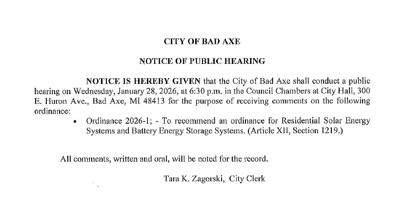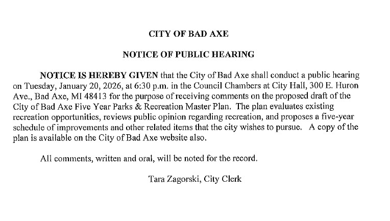 * Currently accepting applications for Planning Commission Committee & Bad Axe Area Fire Protection Association *