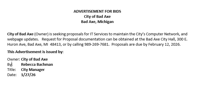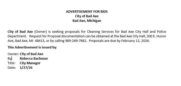 * Currently accepting applications for Planning Commission Committee & Bad Axe Area Fire Protection Association *